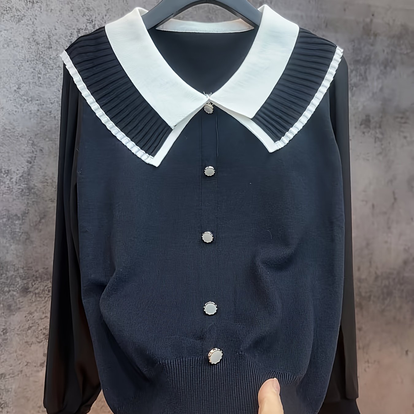 TEMU 패션 캐주얼 스타일 컬러 블록 루즈핏 풀오버 가디건