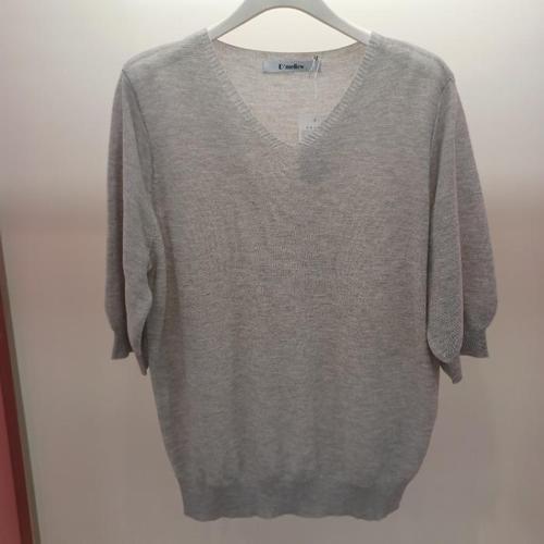 [라티움]Latium HC06 얇고 시원한 메탈배색 LIN 브이넥 7부반팔 니트티 D2623sw07G (48732368)
