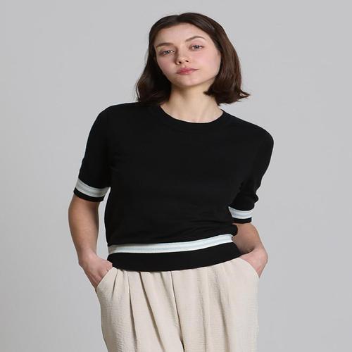 [오조크][오조크(OZOC)] 라인 배색 반소매 니트 (택가격 98000원)