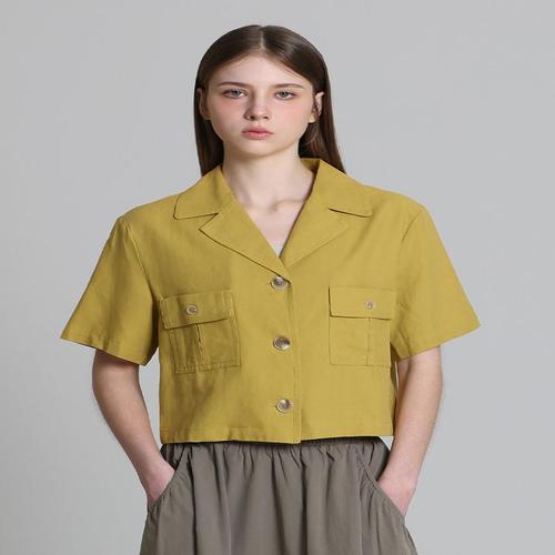 [오조크][오조크(OZOC)] 플리츠 크롭 카라 셔츠 (택가격 85000원)