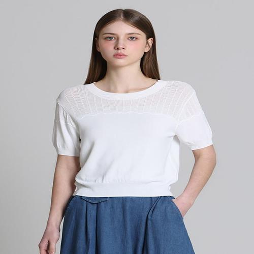 [오조크][오조크(OZOC)] 시스루 배색 라운드 니트 (택가격 99000원)