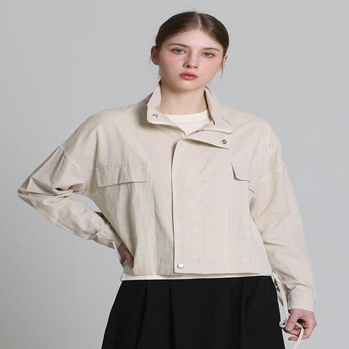 [오조크][오조크(OZOC)] 린넨블렌디드 포켓 하이넥 집업점퍼 (택가격 138000원)