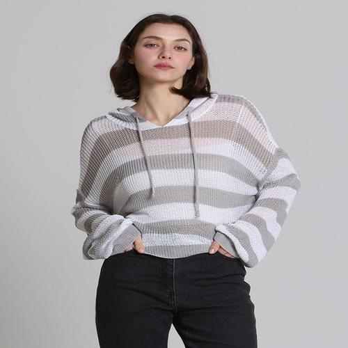 [오조크][오조크(OZOC)] 배색 스트라이프 후드 니트 (택가격 78000원)