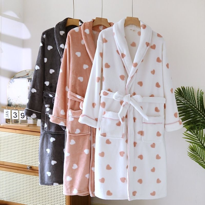 커플 파리 하트 극세사 수면 잠옷 가운 3color