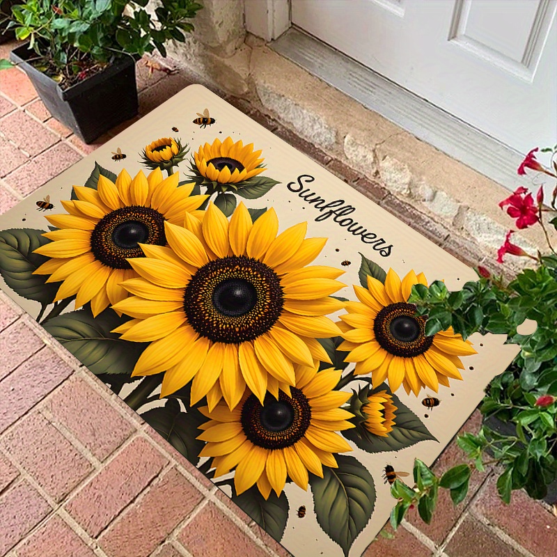 TEMU 테마의 웰컴 플란넬 도어매트 - 다양한 , 벌, 그린 리프 디자인, 실내외 현관 장식용