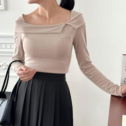 여성용 슬림핏 긴팔 티셔츠 오프숄더 디자인 데일리 상의 WFLLO7N