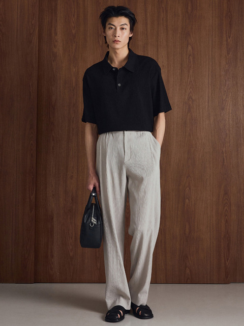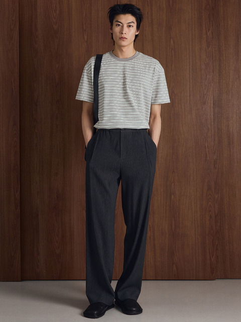 [티엔지티] Kinoshita Seersucker Semi-Wide Pants (Grey) TNPA6E205G2