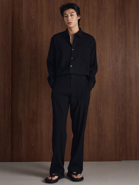 [티엔지티] Kinoshita Seersucker Semi-Wide Pants (Black) TNPA6E205BK
