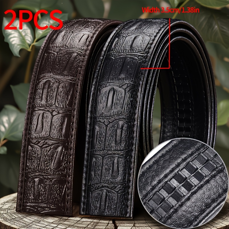 TEMU 남성용 엠보싱 벨트 2개, 버클 없음, 자동 버클에 적합, 3.5Cm/1.38In 폭 코뿔 도마뱀 패턴 래칫 벨트, 스타일리시하고 내구성 좋음, 데일리 출퇴근, 출장, 휴일 선물용 남성용 벨트, 교체 벨트